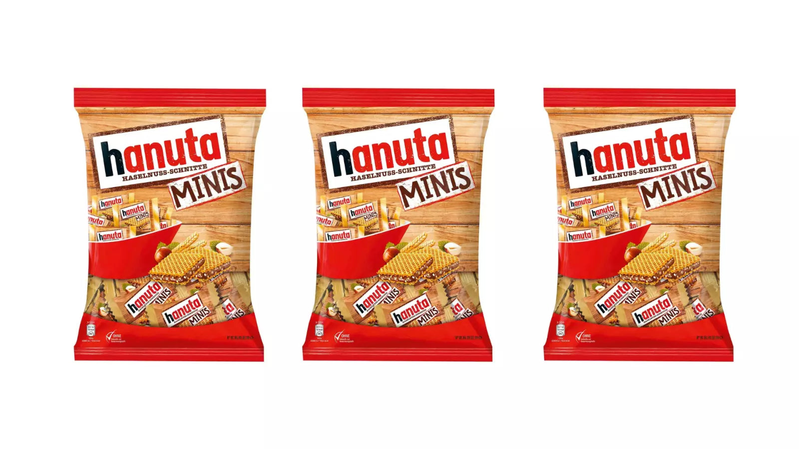 Ferrero Hanuta Minis Pouch, 200 Gram - Hazelnut - Pack of 3 - Hazelnut Delight!