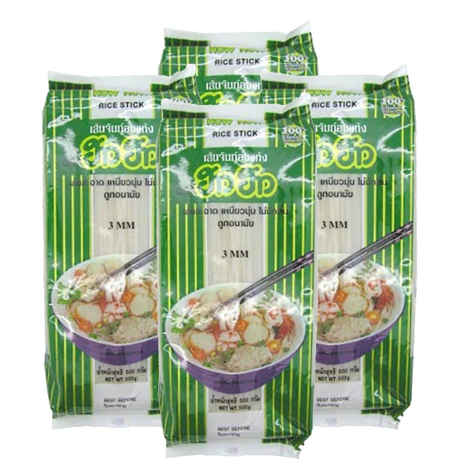 How How 3MM Rice Stick Noodles, 17.64oz(500g) 4 Pack - Gluten-Free, Easy to Cook