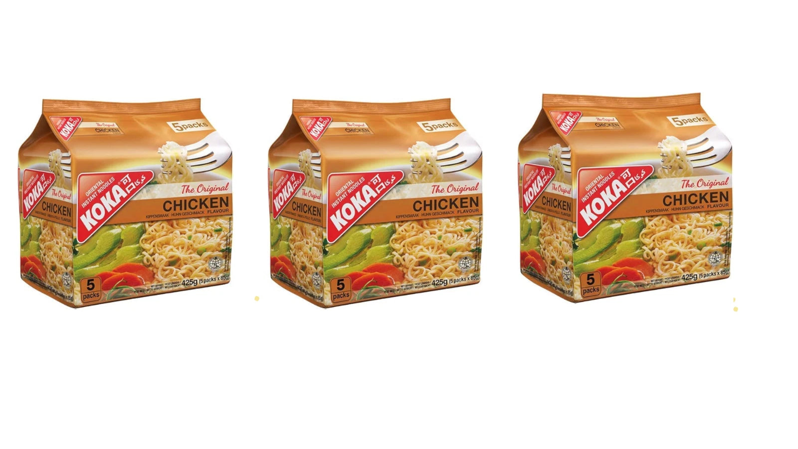 Koka Oriental Instant Noodles Original Chicken Flavour (5 x 85g) - Pack of 3