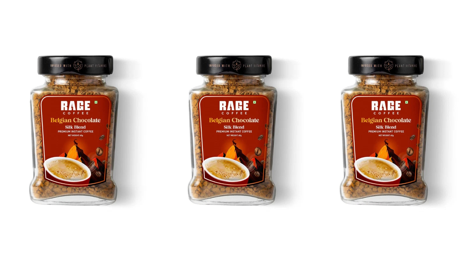 Rage Coffee Silk Blend Instant Coffee Powder Belgian Chocolate 60g - Pack of 3