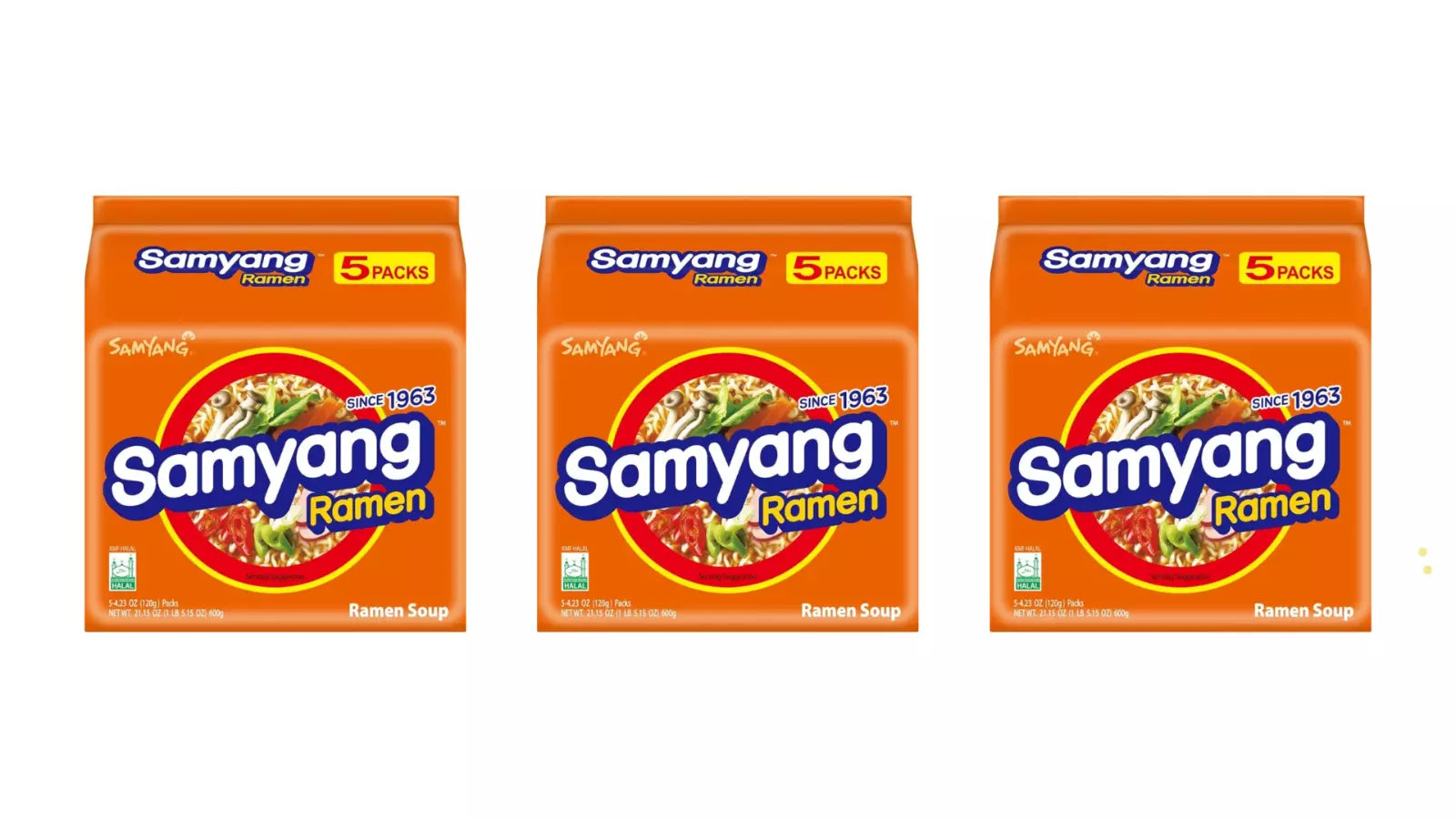 Samyang Ramen Soup Original Noodle, 5 X 120g - Pack of 3 - Korea's Finest!